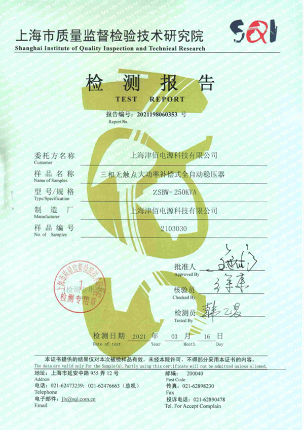 zsbw250kva檢測(cè)報(bào)告