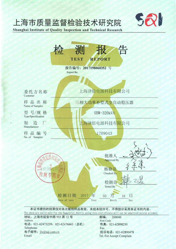 檢測(cè)報(bào)告320KVA