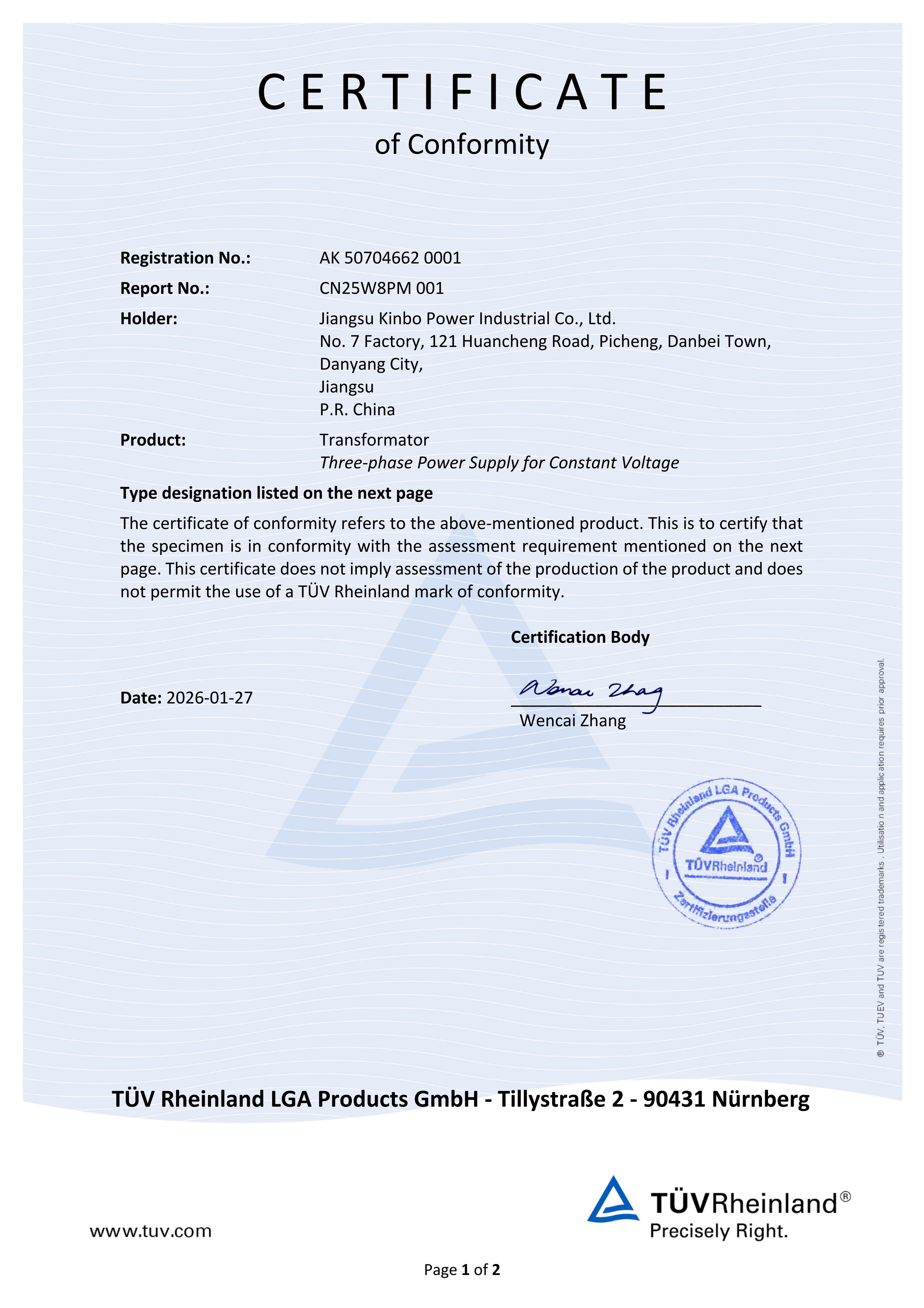 穩(wěn)壓器CE證書(shū)